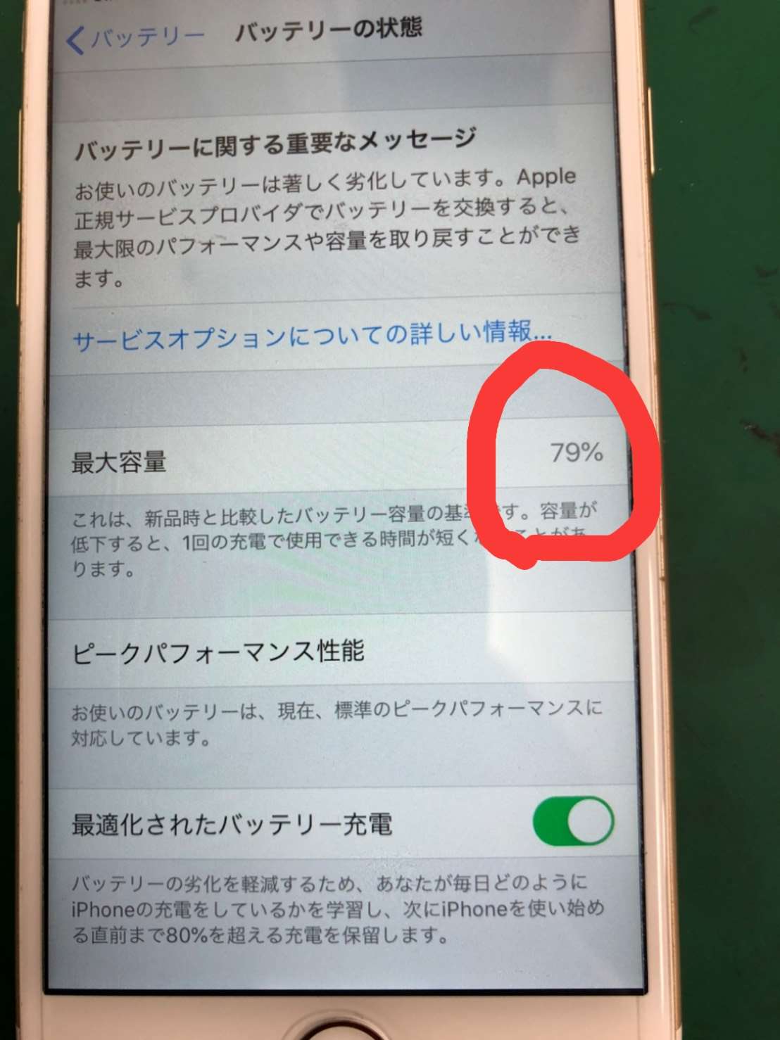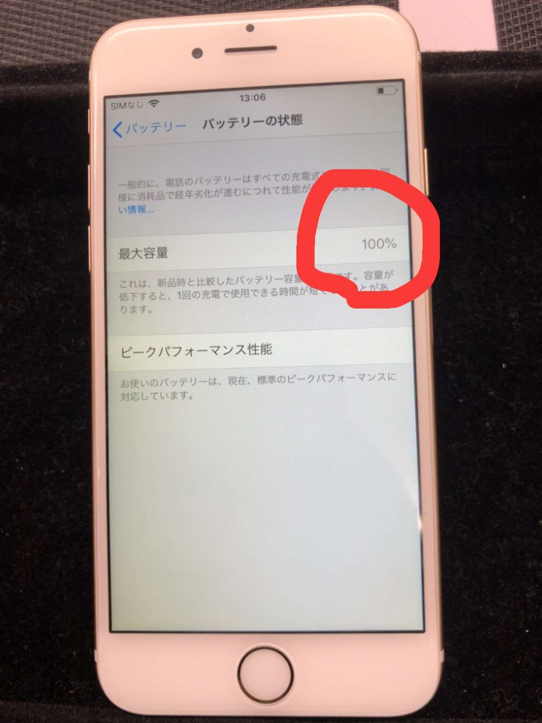 バッテリー交換後は最大容量が100%になっているかチェックしてお返しします。