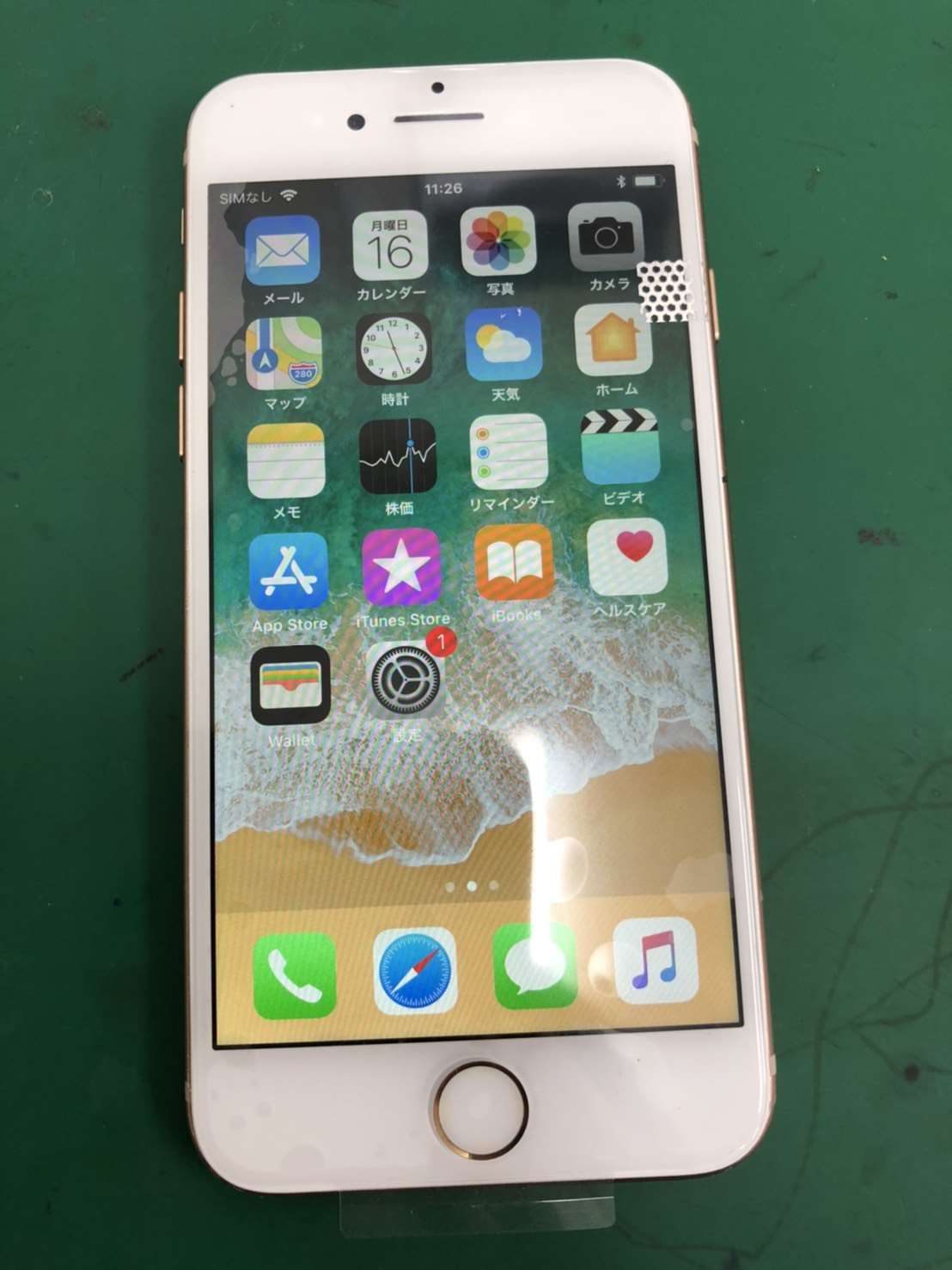 さっそくiPhone8をお預かりします。ウェブ予約を頂いていたのでスムーズに修理を始めさせていただきました。